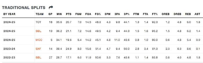 斯威德是湖人队的老熟人,他是2022年落选秀,2020-23赛季和湖人签下双向合同,作为一位身高2米03的前锋,他有一手精湛的投射能力,弱点就是防守比较差。斯威德2023-24赛季和热火签了双向合同,2024-25赛季和活塞签了双向合同。在上赛季中期斯威德在发展联盟被交易到南湾湖人。不过,在3月份他和猛龙签了短工合同。