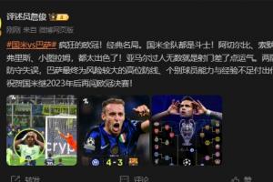 体育资讯05月07日讯 欧冠半决赛次回合,国米4-3,总比分7-6淘汰巴萨。赛后评述员詹俊在社媒做出点评。