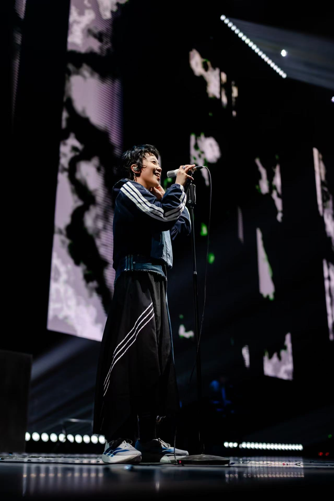 当心跳与节拍触发竞速舞台,先锋音乐人窦靖童携以“速度”为灵感创作的全新作品《Illumination》,于现场完成全球首发。她以独特的电子律动,拆解着外在节奏与内心频率的对抗,将跑步的步频节奏与赛车极速的张力转化为音乐语言,把高楼林立的城市景观与内心的流动速度织成诗篇。伴随着电子节拍,窦靖童带领全场观众互动跳跃,构成这场“竞速实验”里共同跳动的脉搏。